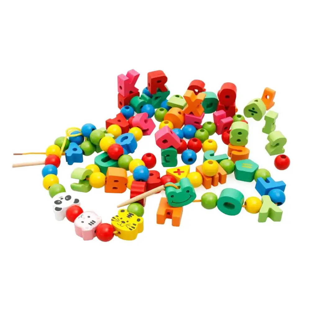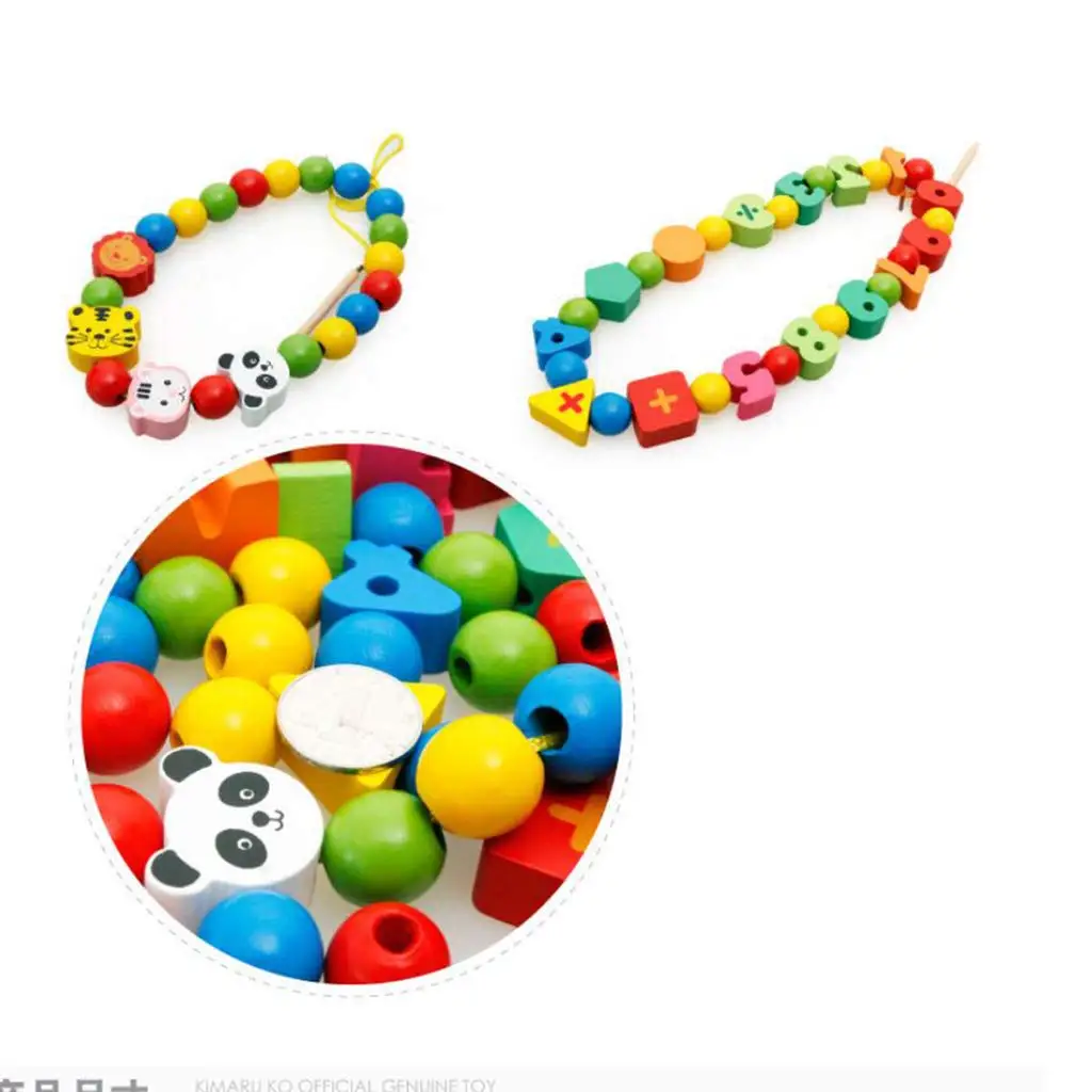 BEST QUALITY 88pcs Wooden Blocks DIY Beads Lacing Game Color Shape Math Creative Early Learning Educational Toys